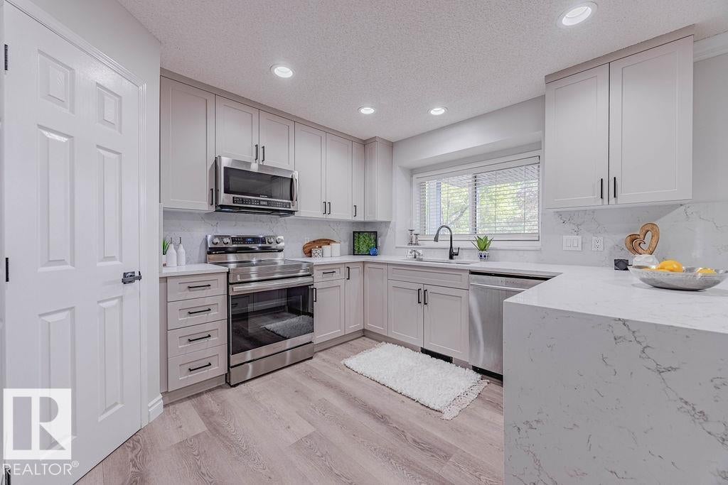 Looking for a home that’ll make you say WOW? This Oakmont showstopper has it all & is packed w/ stunning upgrades from top to bottom! Step inside to soaring 2-storey ceilings & a spacious open-concept family & dining area that’s perfect for entertaining. The BRAND NEW kitchen is a dream — modern soft-close cabinets, gleaming quartz countertops & a seamless flow into the cozy great room. From there, step out to your three-season hot tub room or the covered deck w/ south-facing exposure — ideal for year-round enjoyment! The landscaping is straight out of a magazine w/ custom stonework, perennials, dual fountains & ambient evening lighting. Upstairs, unwind in your primary suite featuring a WIC & private ensuite. Two more bedrooms & a full bath complete this level. The fully finished basement offers even more space with 2 additional bedrooms, a full bath, & storage. Updates over the last decade include: roof, siding, furnace, on-demand HWT, hot tub, sump, landscaping, & appliances — it’s truly move-in ready